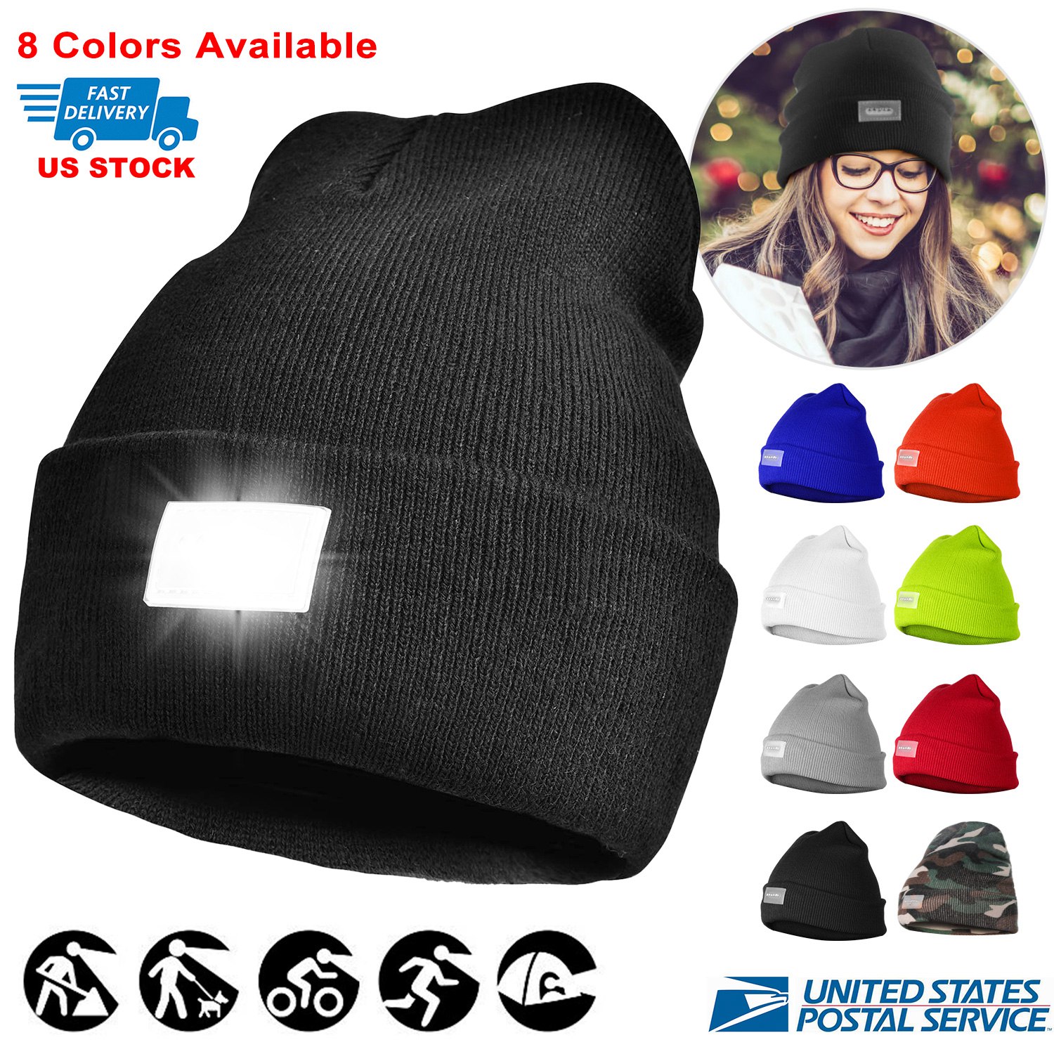 This soft and cozy beanie attached with 5 LED flashlight keeps your head warm while lights up the path ahead after dark, providing great convenience whether you’re jogging, walking or running. Simply slide the power button to turn on the light, freeing your hands from holding a flashlight.
