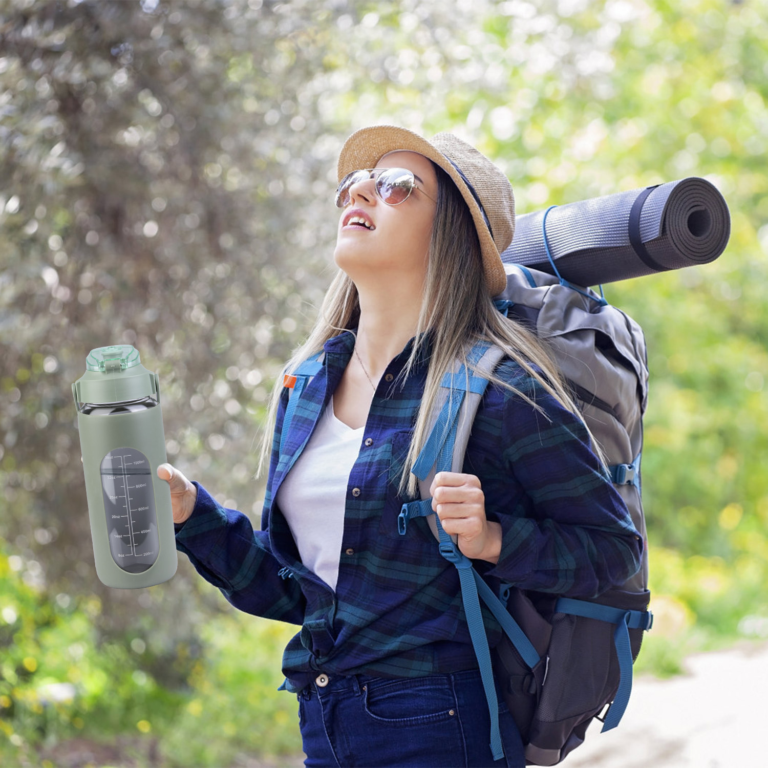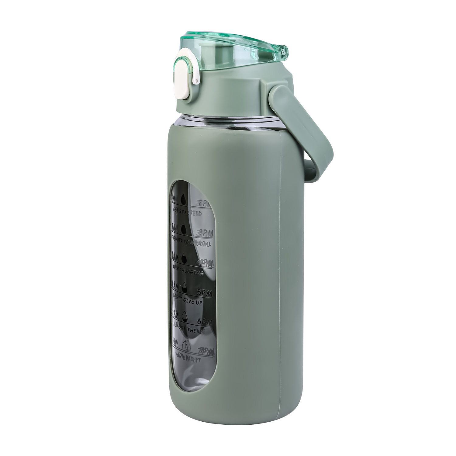 Are you tired of forgetting to stay hydrated throughout the day? Look no further than our motivational water bottle! Comes with timer markers and and precise volume on the side, helping you track your water intake with ease. With its large capacity(32Oz or 64 Oz), you can refill the sports water bottle up less frequently and keep yourself refreshed all day long. Made of high borosilicate glass, suitable for both warm and cold beverages, heat-resistant, dishwasher safe and healthy to use. Slip resistant with silicone sleeve and easy to carry with a built-in handle. And for added convenience, it features a built-in straw, making it easy to drink water on the go. Plus, its stylish design and motivational messages will inspire you to keep pushing towards your health goals. So why wait? Invest in our water intake tracker bottle today and take the first step towards a healthier, happier you!