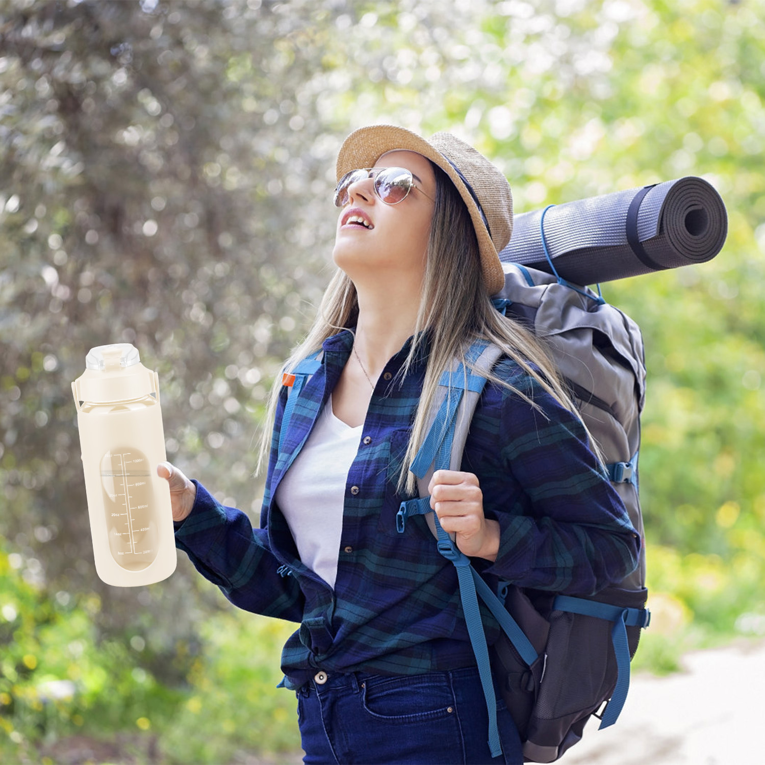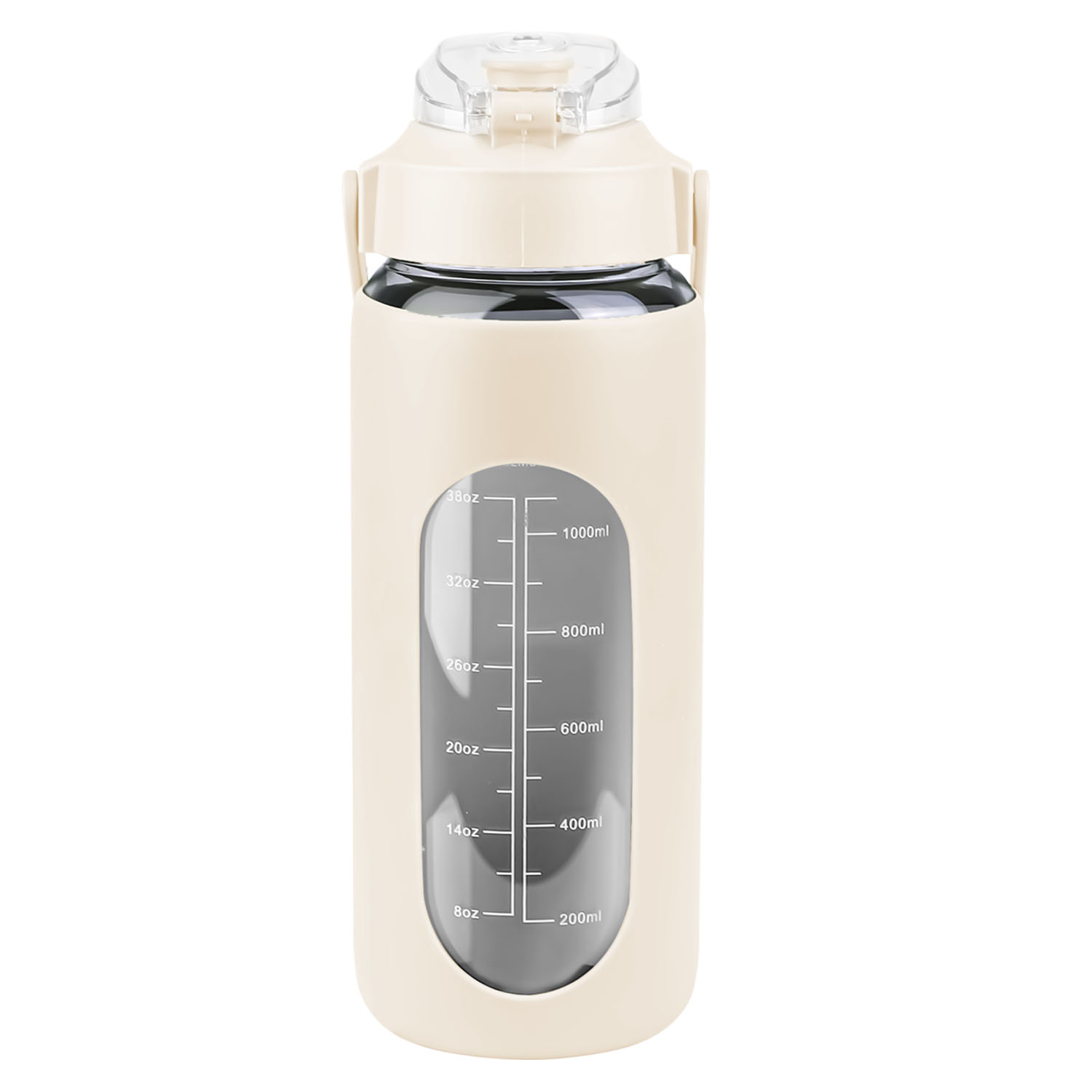 Are you tired of forgetting to stay hydrated throughout the day? Look no further than our motivational water bottle! Comes with timer markers and and precise volume on the side, helping you track your water intake with ease. With its large capacity(32Oz or 64 Oz), you can refill the sports water bottle up less frequently and keep yourself refreshed all day long. Made of high borosilicate glass, suitable for both warm and cold beverages, heat-resistant, dishwasher safe and healthy to use. Slip resistant with silicone sleeve and easy to carry with a built-in handle. And for added convenience, it features a built-in straw, making it easy to drink water on the go. Plus, its stylish design and motivational messages will inspire you to keep pushing towards your health goals. So why wait? Invest in our water intake tracker bottle today and take the first step towards a healthier, happier you!