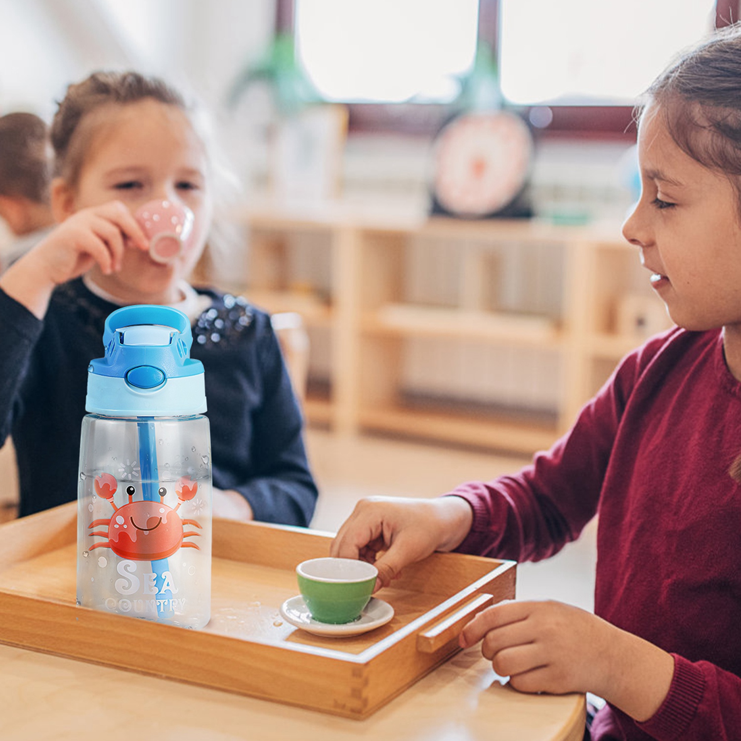 Looking for safe and fun water bottles for your children? Made with non-toxic PP lid and PC body materials, our water bottle comes in 4 fun designs(Crab/Ship/ Jellyfish/Rocket), capturing children's interests and encouraging them to drink more water. The considerate push button and straw provides easier access to water. The inbuilt handle and leak-proof design makes it perfect for on-the-go hydration. Plus, with a capacity of 480ml/16.2oz, it's just the right size for your children to carry and drink from throughout the day.