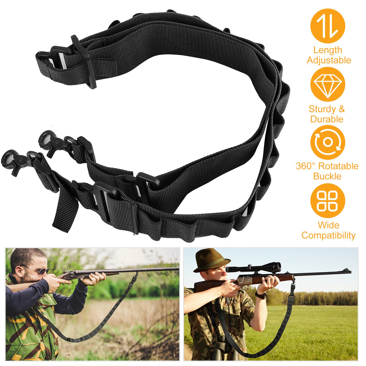 Our Tactical Shotgun Sling, made of super strong nylon webbing, is very strong, durable and sturdy. With 2 steel swivels points, you can attach and detach weapon quickly. It can be adjusted from 3.67ft to 4.92ft. Besides, three colors are provided for you to choose.
