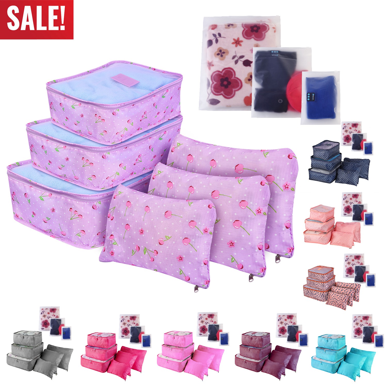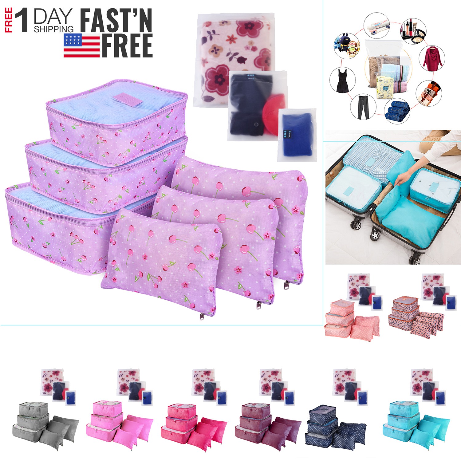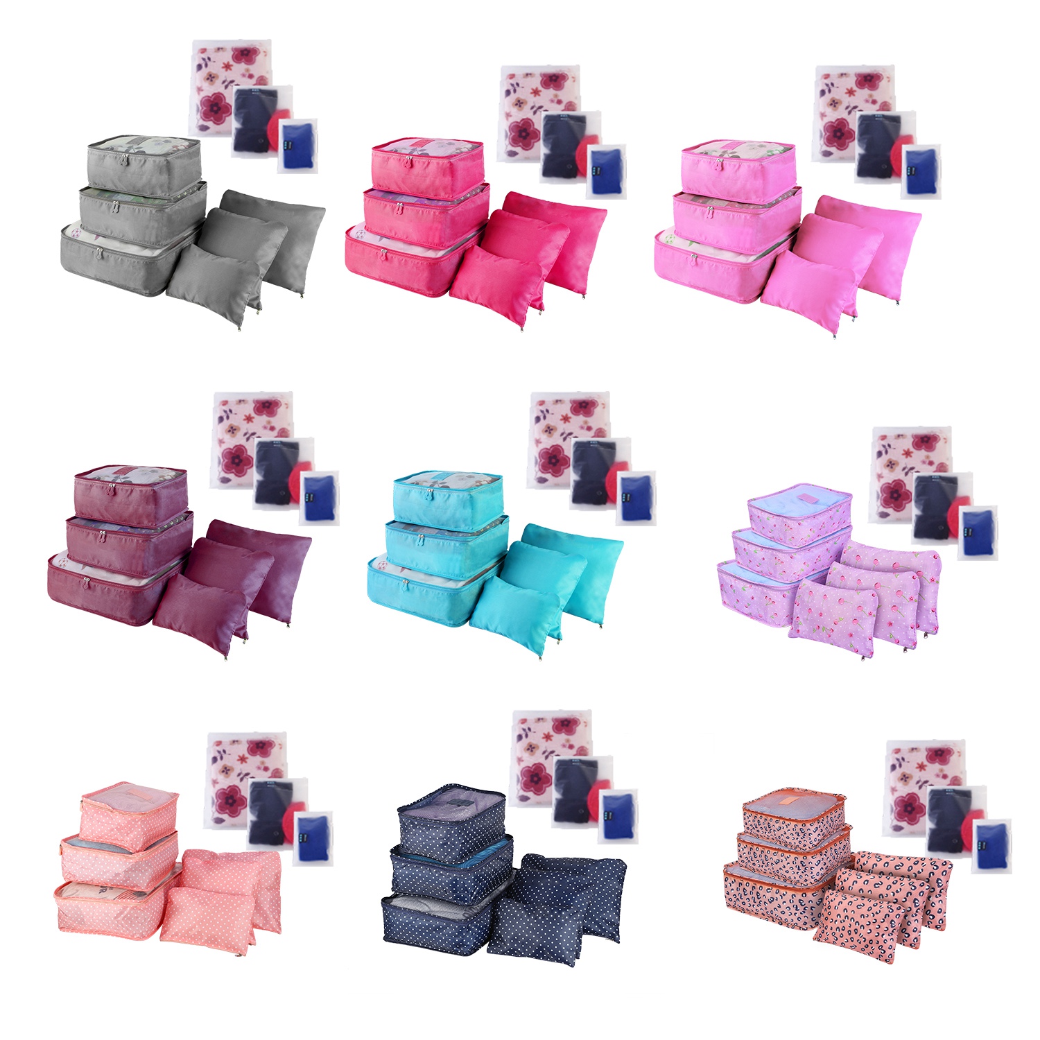 Whether you are a frequent flyer or an occasional vacationer, packing your bags can be a daunting task. Even the most efficiently packed suitcase can become a jumbled mess after a few hours of rough handling. That’s where travel storage organize bag come in. No more a challenges to package your clothes and know where items were stored with this awesome travel storage organize bag set. There includes 3 sized packing cubes, 3 sized storage pouches and 3 sized storage bags that make travel and finding things much easier and organized. You can easily separate and pack different clothes as well as small items. Packing cubs can fit your suitcase nicely, because light weight and thin frame to add no additional weight and bulk to your suitcase so as to guarantee the storage efficiency at the most extent for original luggage.