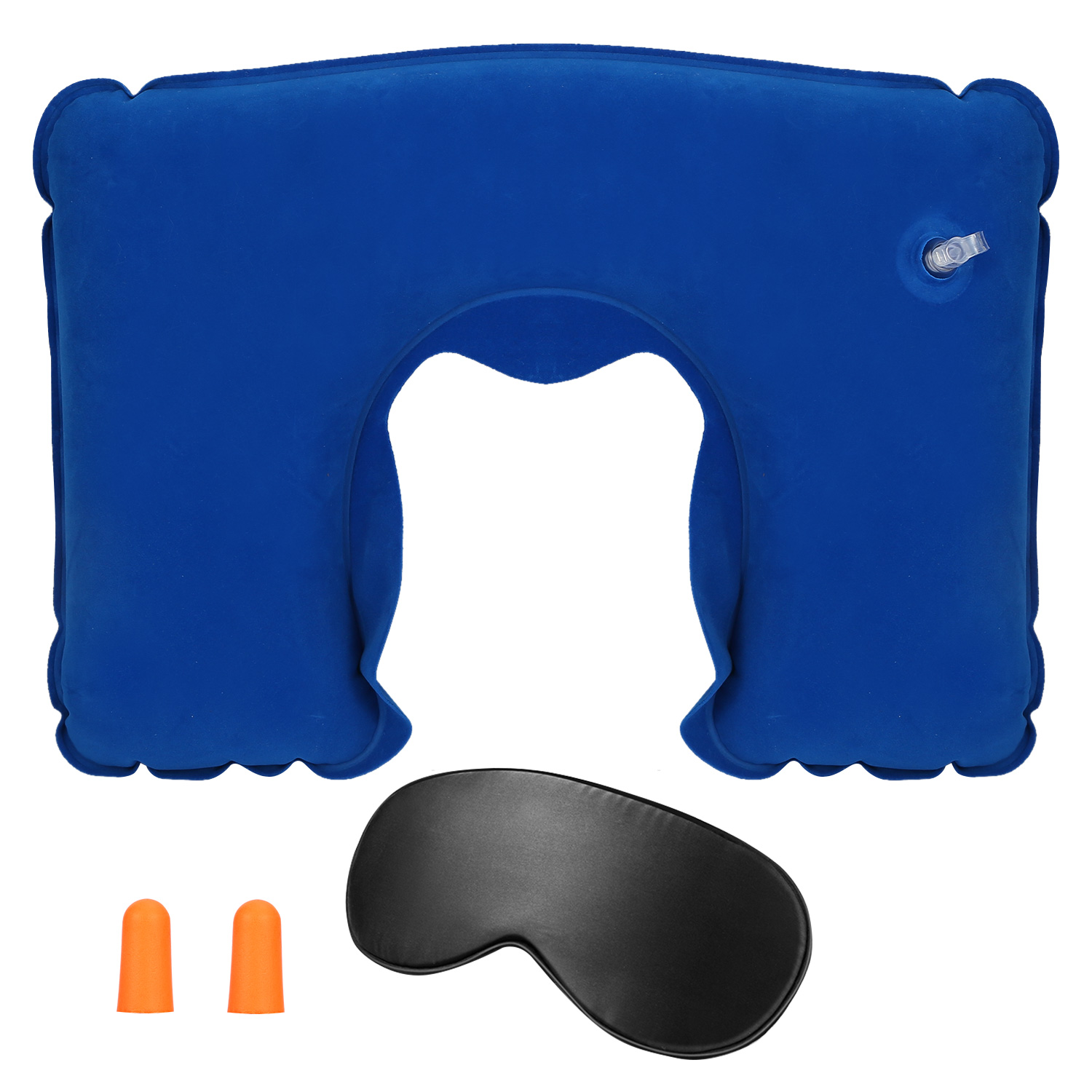 Our reliable inflatable U shape neck pillow, made from sturdy and durable PVC materials and adopting comfortable and skin-friendly flocking fabric on its surface, is an ideal pillow to help those who suffer from chronic neck, shoulder, or upper back pain, a reliable necessity prepared for your trip and having a noon nap on office chair, through helping maintain proper head and neck alignment to provide a comfortable sleeping posture. Additionally, the package includes one piece eye mask help block the light out and one pair of ear plugs to cut off the noise outside when sleeping. And 7 colors are available for your selection.
