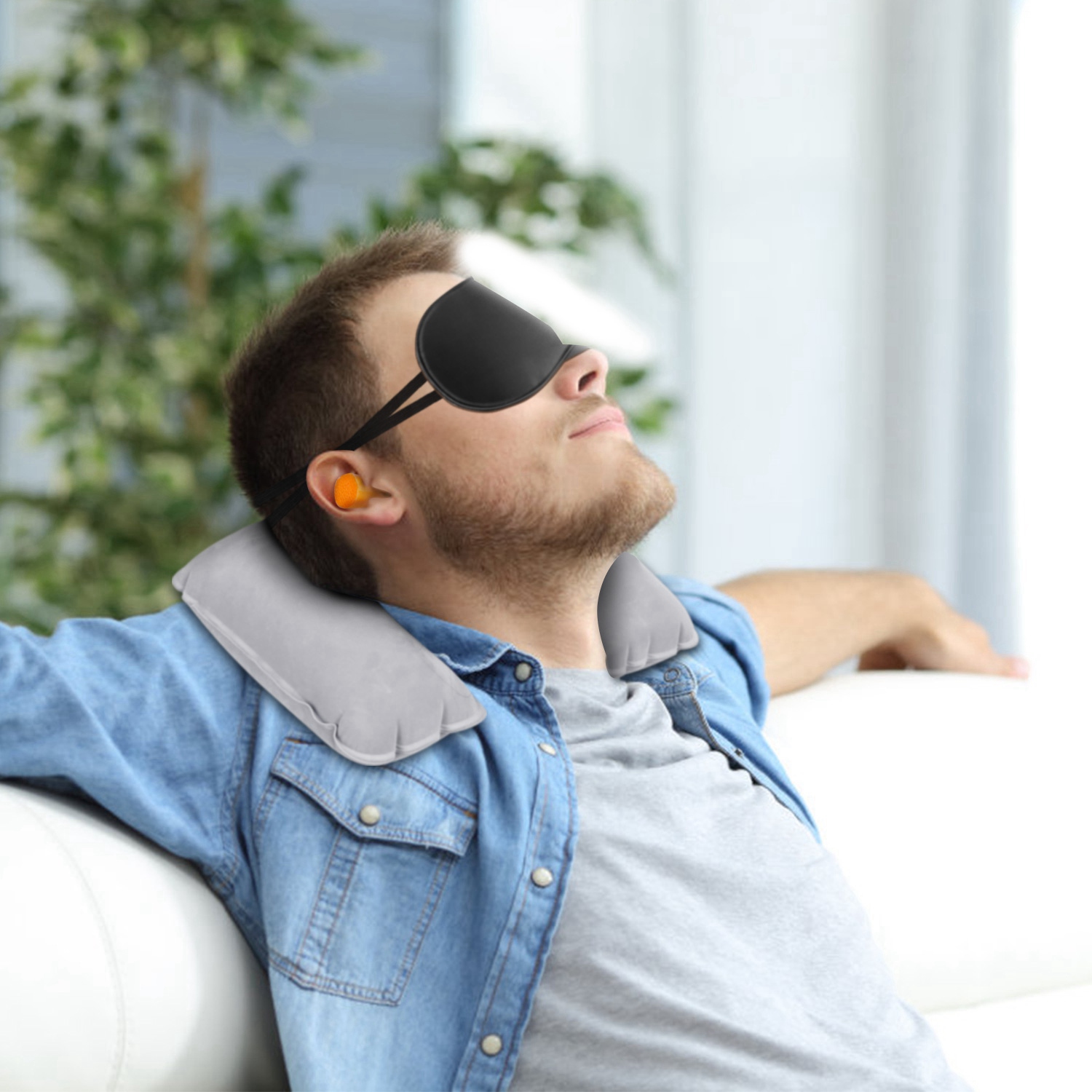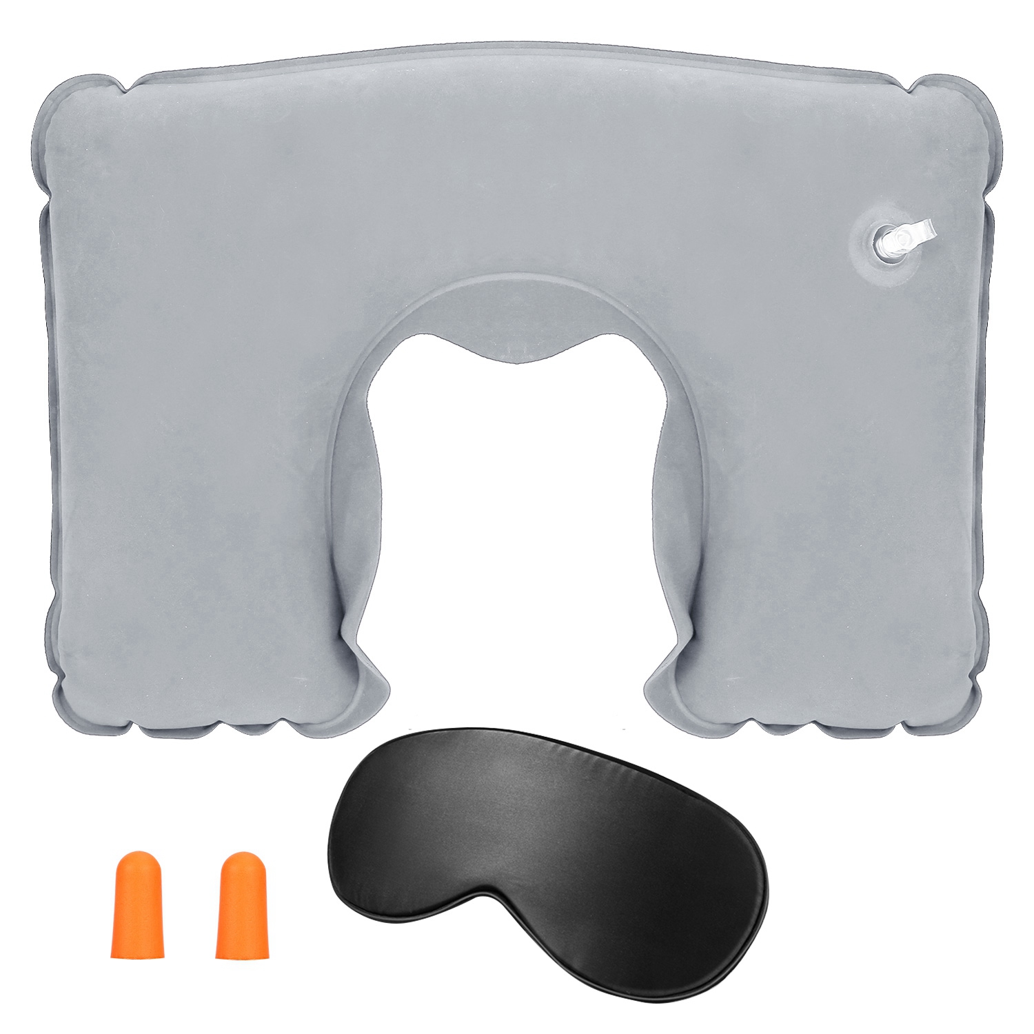 Our reliable inflatable U shape neck pillow, made from sturdy and durable PVC materials and adopting comfortable and skin-friendly flocking fabric on its surface, is an ideal pillow to help those who suffer from chronic neck, shoulder, or upper back pain, a reliable necessity prepared for your trip and having a noon nap on office chair, through helping maintain proper head and neck alignment to provide a comfortable sleeping posture. Additionally, the package includes one piece eye mask help block the light out and one pair of ear plugs to cut off the noise outside when sleeping. And 7 colors are available for your selection.
