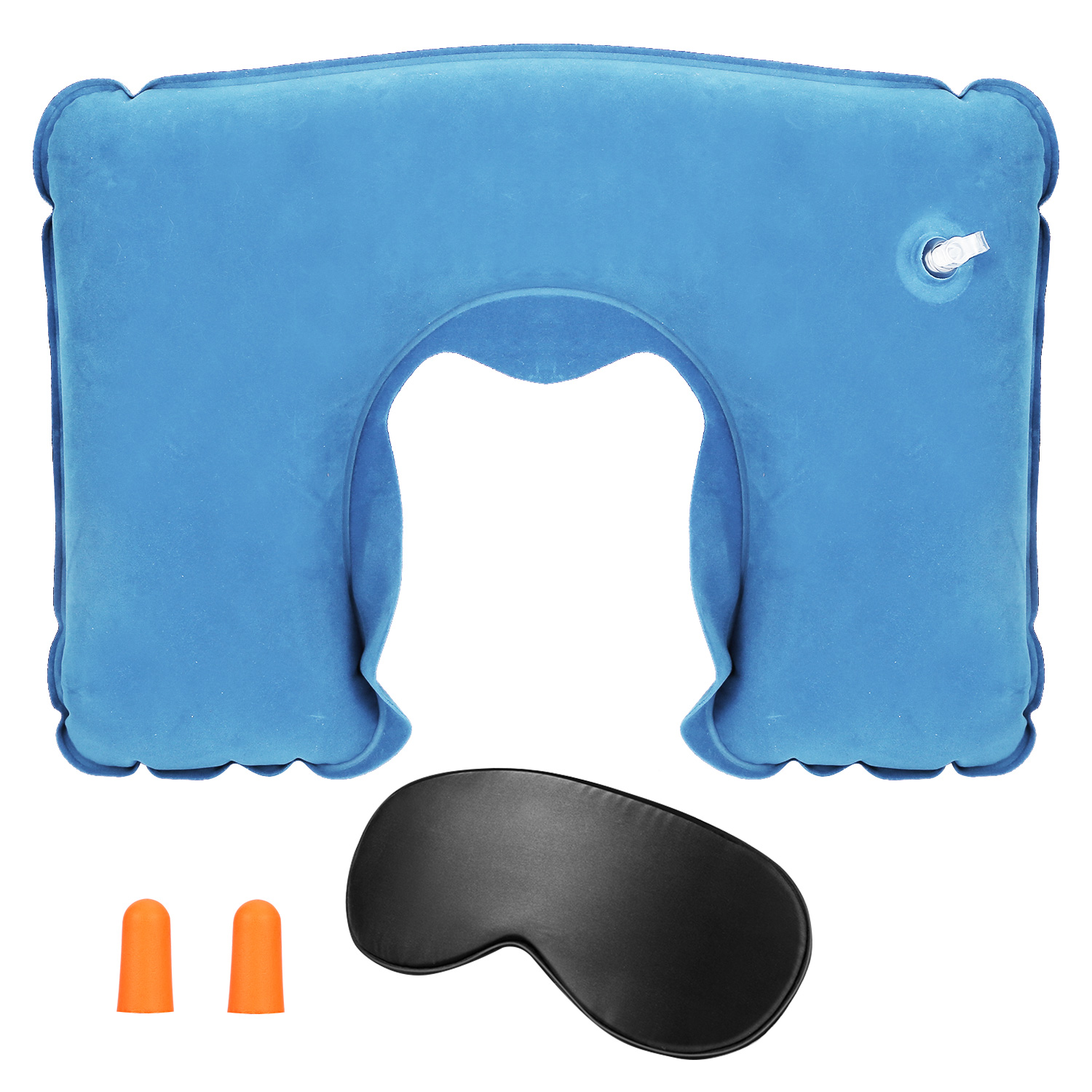 Our reliable inflatable U shape neck pillow, made from sturdy and durable PVC materials and adopting comfortable and skin-friendly flocking fabric on its surface, is an ideal pillow to help those who suffer from chronic neck, shoulder, or upper back pain, a reliable necessity prepared for your trip and having a noon nap on office chair, through helping maintain proper head and neck alignment to provide a comfortable sleeping posture. Additionally, the package includes one piece eye mask help block the light out and one pair of ear plugs to cut off the noise outside when sleeping. And 7 colors are available for your selection.
