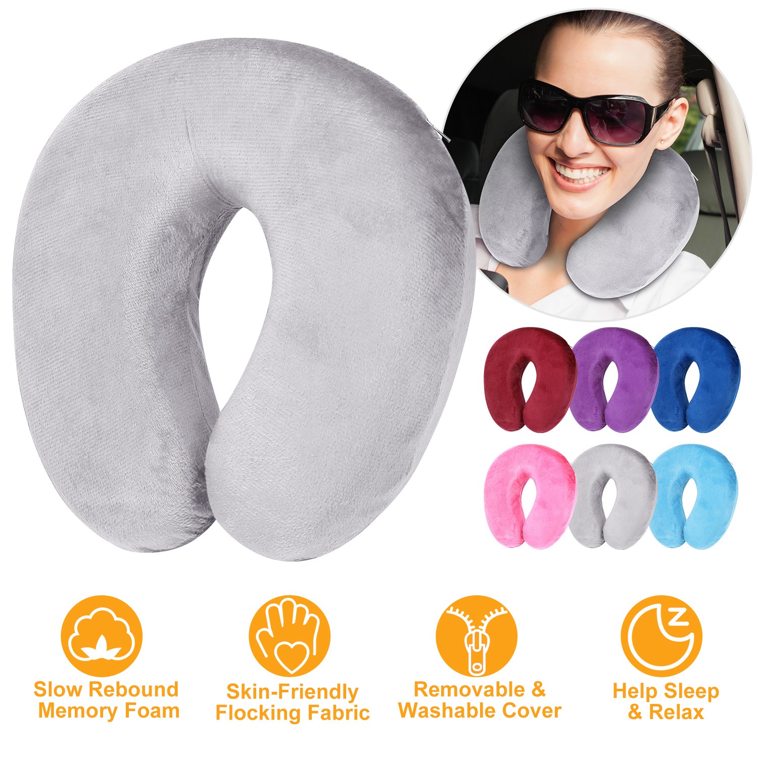 Our reliable memory foam U shape neck pillow, made from premium high-density memory foam materials and adopting ergonomic U-shaped cut out design, is an ideal pillow to help those who suffer from chronic neck, shoulder, or upper back pain, a reliable necessity prepared for your trip and having a noon nap on office chair, through helping maintain proper head and neck alignment to provide a comfortable sleeping posture. Additionally, it comes with a breathable and washable mesh cover to accelerate air circulation and keep you cool and comfortable during your sleeping time. And 6 colors are available for your selection.