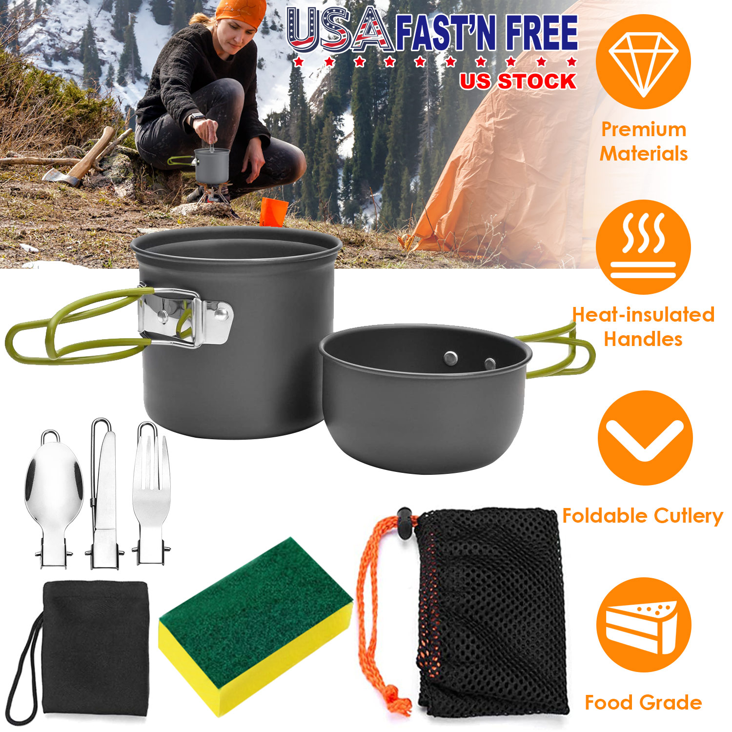 8Pcs Camping Cooking Ware Set Camping Stove Cookware Set Aluminum Pot Foldable Knife Fork Spoon Set for Hiking Picnic Outdoor